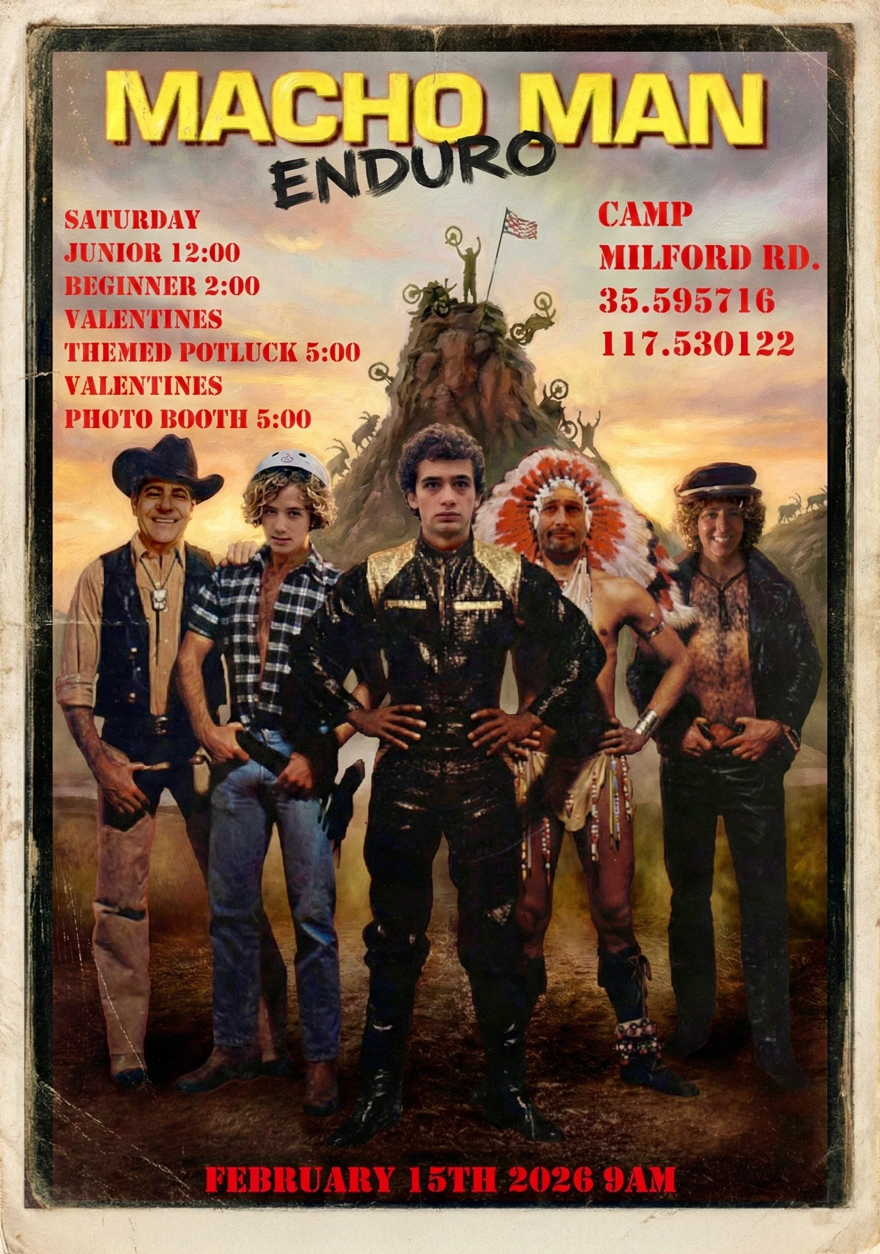 See you all at the Macho Man Enduro, where the terrain will be brutal, the competition fierce, and the excuses plentiful.